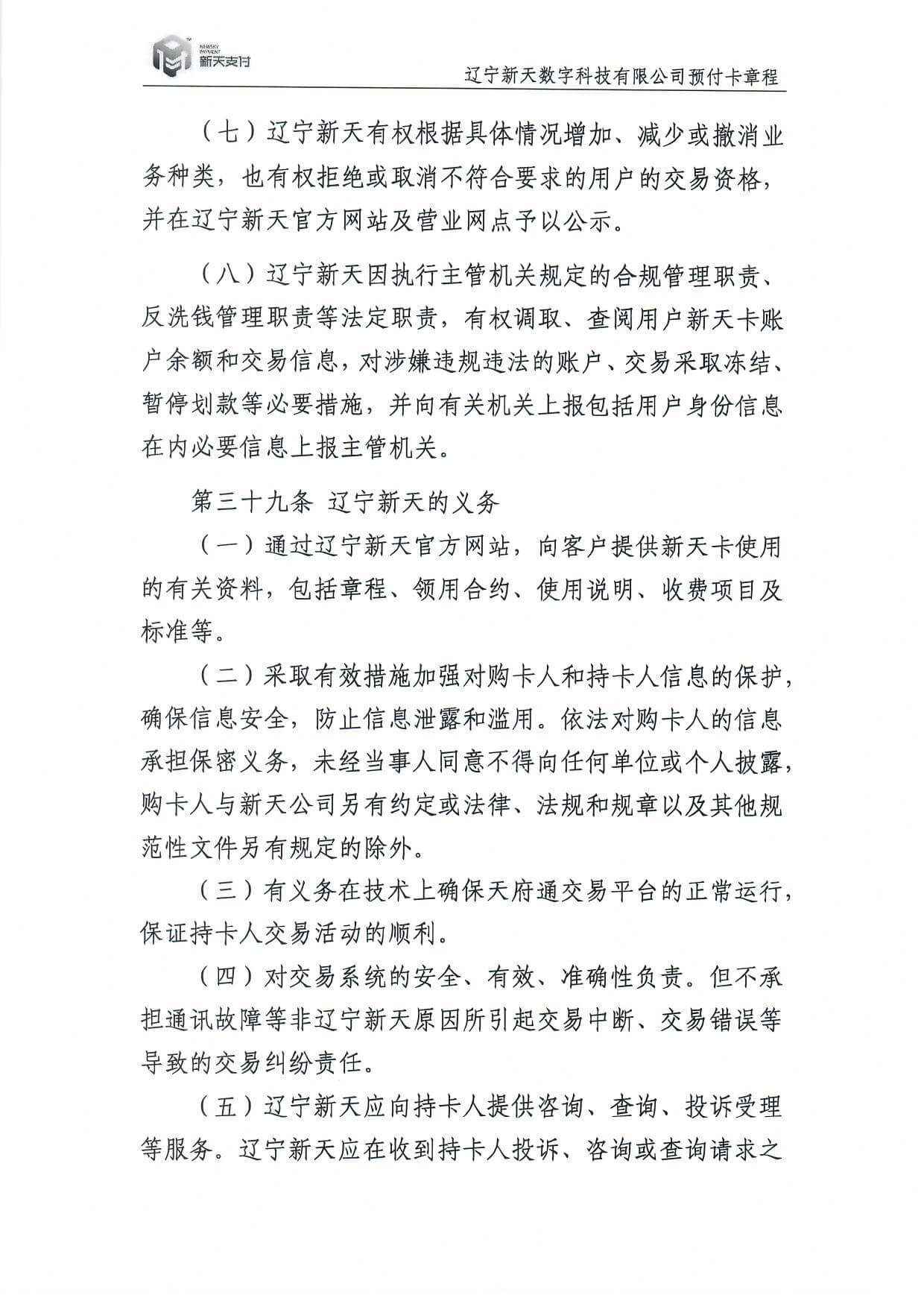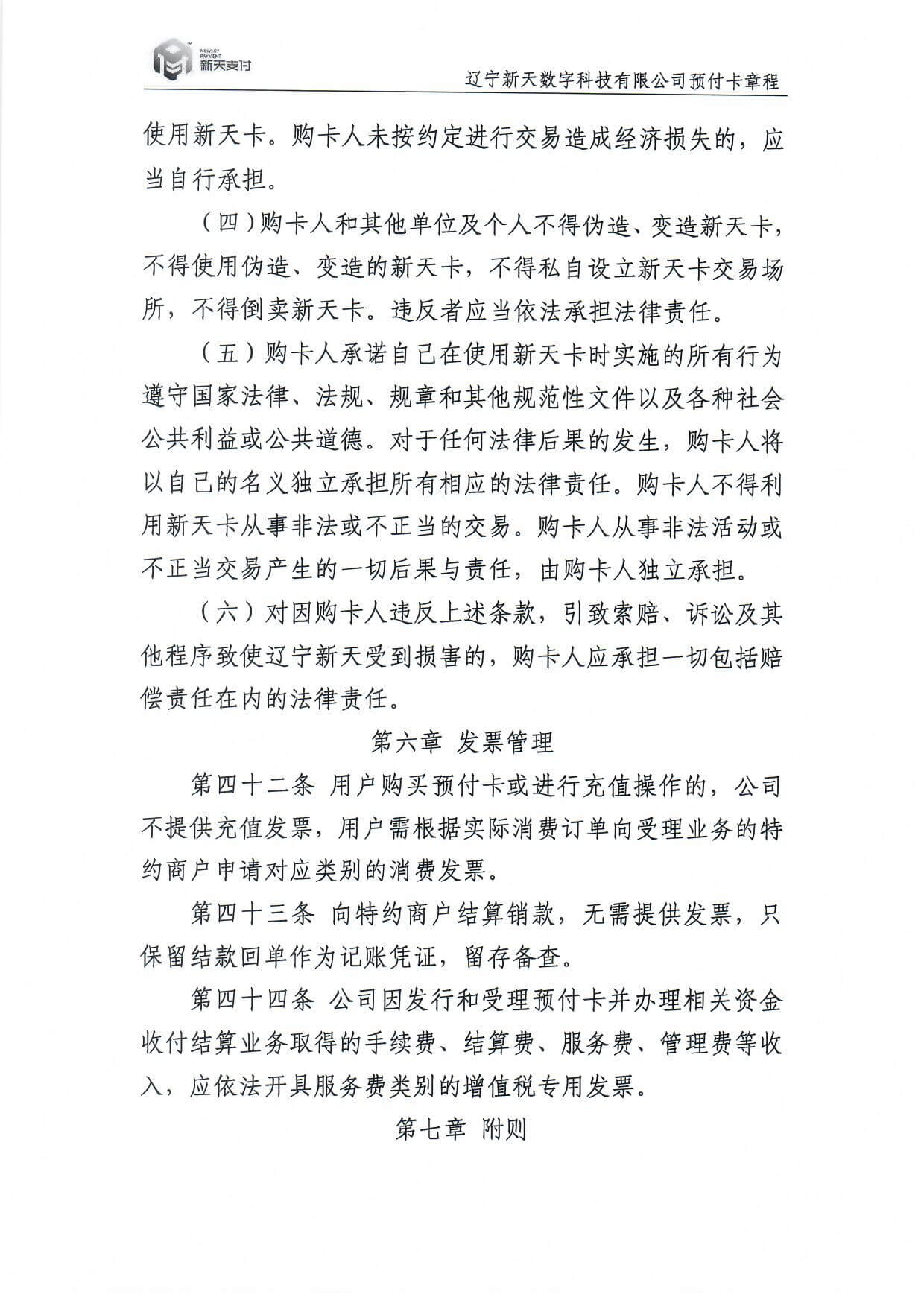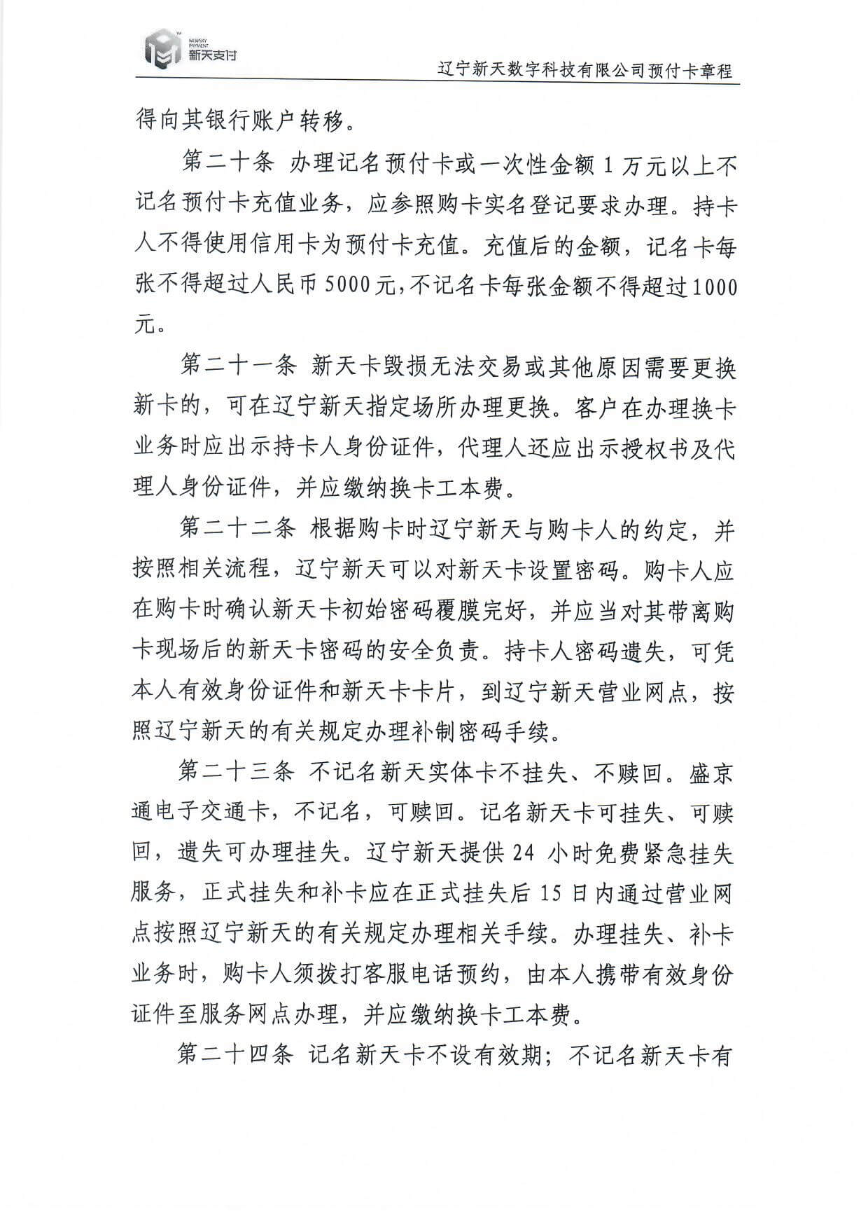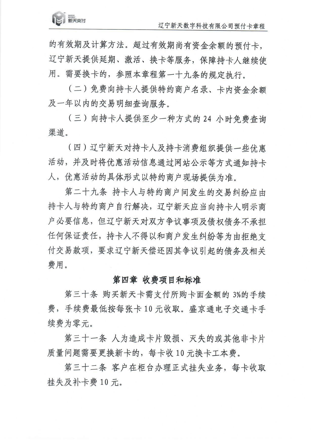 新天卡业务>预付卡章程